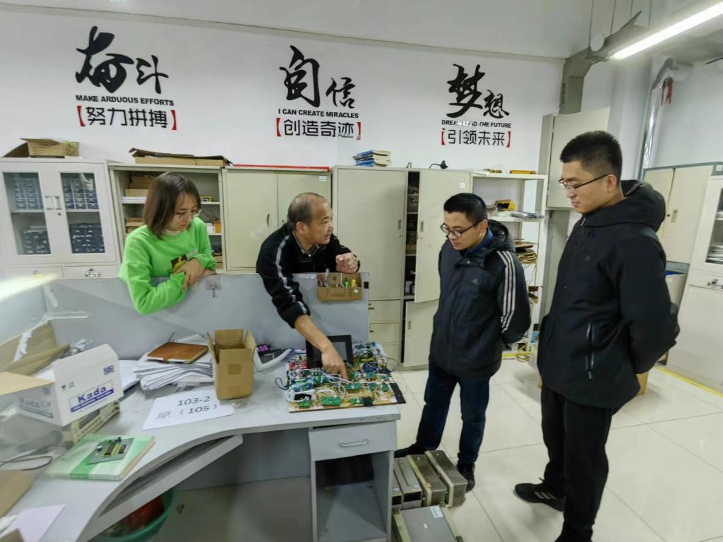 座谈会后,赵景波、秦臻等学院领导老师陪同赵士龙、刘君虎参观了学院实验室与学生创新实践基地和学术研究与社会服务中心。在学生创新实践基地,企业一行与正在留校准备做科创比赛的学生进行了交流;在学院学术研究与社会服务中心,双方就空间布局规划与设计进行了深入的交流讨论,共同探讨了如何更好地利用这些空间资源为合作企业和在校生提供更优质的服务和帮助。