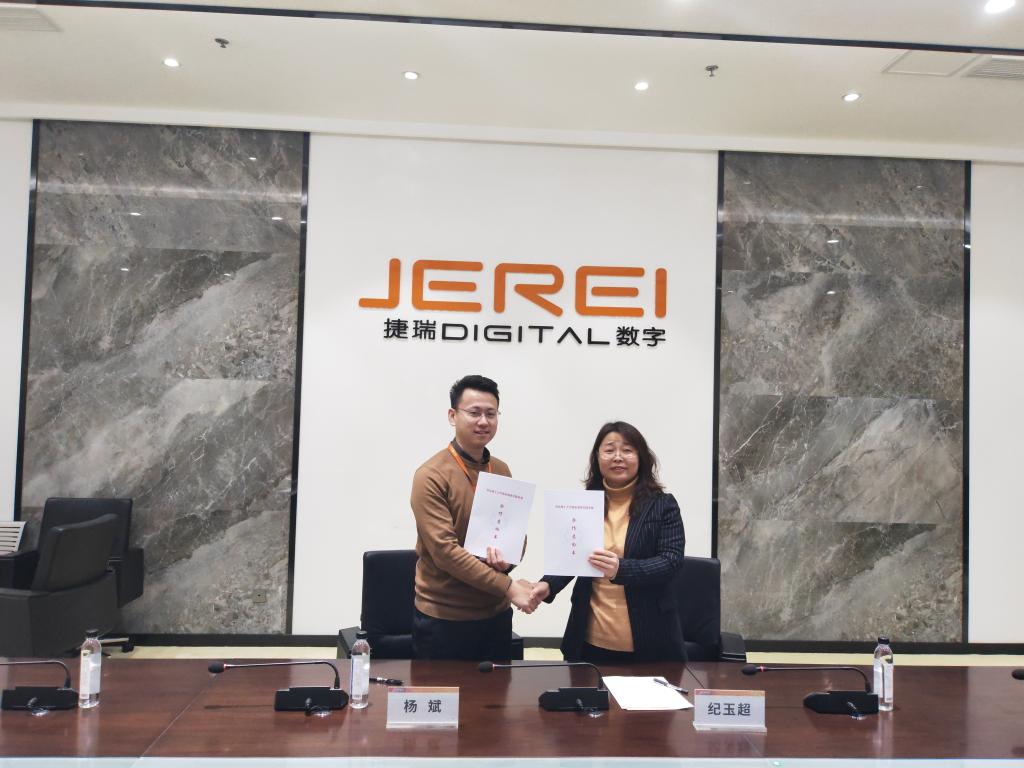 1月26日上午,邹传波一行来到山东捷瑞数字科技股份有限公司,在校友杨斌的带领下实地参观了捷瑞数字中心,了解企业发展历程、企业文化、伏锂码云平台及数字孪生技术的创新研发与数字化转型案例。之后,双方召开了座谈会,邹传波简要介绍了学院总体情况、发展前景和人才培养目标等,希望通过向用人单位推荐优秀毕业生,促进产学研相结合等多种形式开展深度合作,将企业招聘需求与学院人才培养对接,探索校企协同育人新模式,实现校企共赢。最后,校企双方顺利完成了“大学生就业创业实践基地”签约暨授牌仪式。