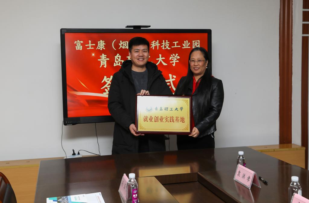 在富士康(烟台)科技工业园,邹传波一行参观了公司员工关爱中心、企业产品展厅、产品研发设计中心和测试中心。座谈中,邹传波向企业介绍了学院的建设发展、人才培养、科学研究、学科专业设置等方面情况,校企双方就人才培养、平台建设、科技创新等方面进行深入交流。邹传波表示希望能够继续加强校企合作,将学校资源优势与企业优势有效对接,持续深化在人才培养、实习基地建设、产学研合作、社会实践等方面的合作,帮助学生明确职业发展方向。最后双方共同签订《永利集团3044官网欢迎您就业创业实践基地合作意向书》,并举行了就业创业实践基地授牌仪式。